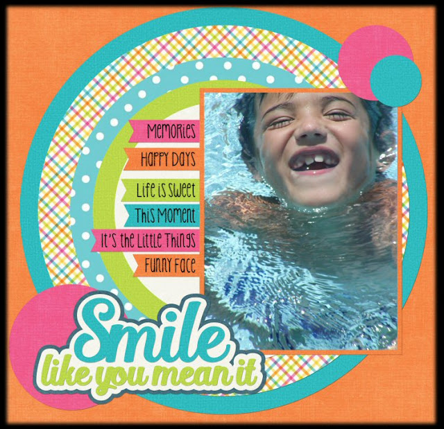 I used the new Smile Like You Mean It page layout and various papers from my stash.